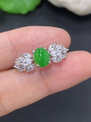 F37444198 Jadeite Cabochon Inlaid Ring Adjustable Size Non-Gold Setting Total Weight Approx. 2.9g