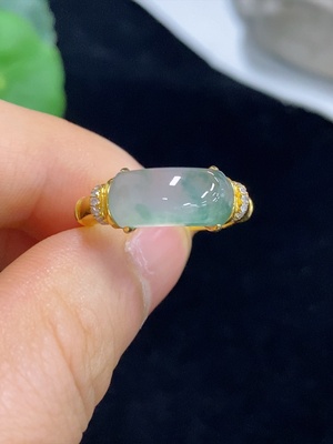 F39567743 Jadeite Ring 18k Gold Set with Diamonds Total Weight Approx. 3.4g Size 14