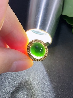 F40772933 Jadeite cabochon inlay ring 18K gold size 14 total weight approx. 2.5g