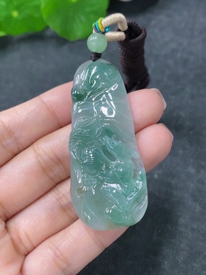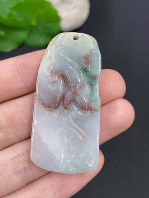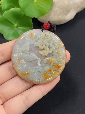 F39638262 Jadeite Landscape Pendant with Non-A Grade Beads, Total Weight Approximately 24.99g
