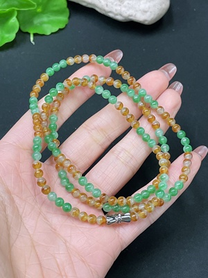 F37420683 Jadeite Bead Necklace Approx. 3.5mm Non-Gold Total Weight Approx. 15.8g Non-Grade A Beads (With Impurities)