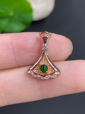 F40746039 Jadeite Lucky Bean Pendant with 18K Gold and Diamond Accents, Total Weight Approx. 1.6g