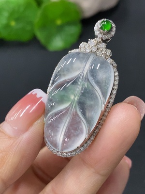 F27053106 Jadeite Inlaid Leaf Pendant 18k Total Weight Approx.8.84g