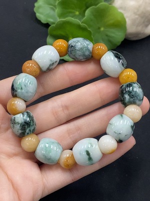F36333604 Jadeite Bracelet Approx.13.6mm Yellow Bead Non-Grade A Containing Other Mineral Components Total Weight Approx.55.12g