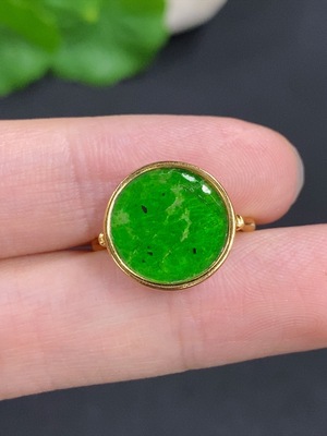 F39580558 Jadeite Inlaid Ring Non-Gold Inlaid Adjustable Size Total Weight Approx.1.8g Containing Other Minerals With Damage