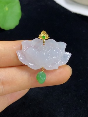 F38537261 Jadeite Lotus Pendant 18k Total Weight Approx. 5.12g