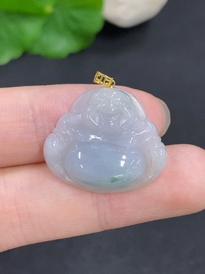 F39611753 Jadeite Buddha Pendant with 18k Gold Clasp, Total Weight Approximately 3.7g