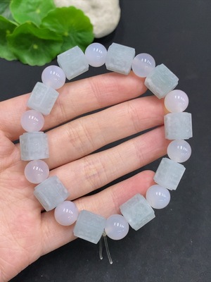 F37356045 Jadeite Rough Six-Syllable Mantra Bracelet