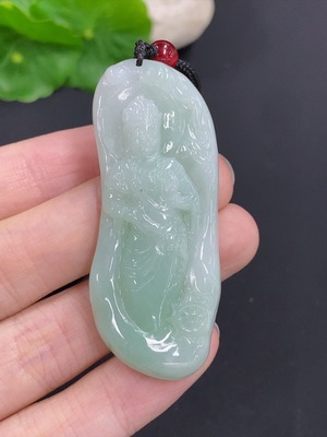 F40685554 Jadeite Guanyin Pendant Total Weight Approx. 20.1g (Including Rope Weight)