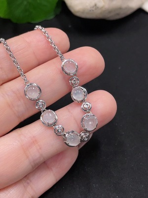 F36340544 Jadeite Necklace 18k Gold Set with Diamonds Total Weight Approx. 3.7g