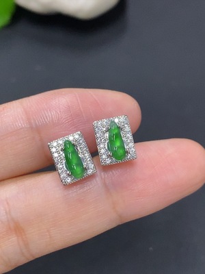 F39635107 Jadeite Inlaid Earrings Non-Gold Total Weight Approximately 1.3g