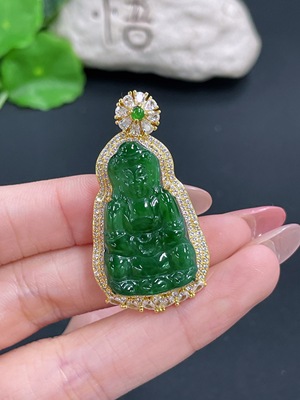 F40739122 Jadeite Guanyin Inlaid Pendant Non-Gold Inlaid Total Weight About 9.88g