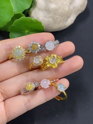 F40707071 Jadeite Cabochon Inlay Ring Non-Gold Setting Adjustable Size