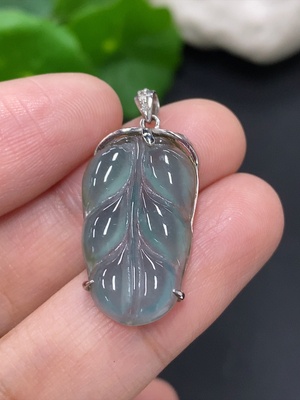 F37443709 Jadeite Leaf Inlaid Pendant 18K Gold Total Weight Approx. 2.4g (With Diamond Accents)