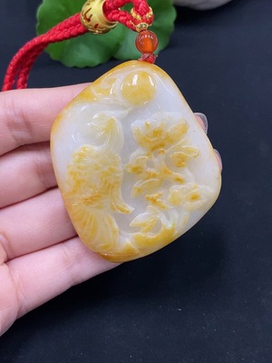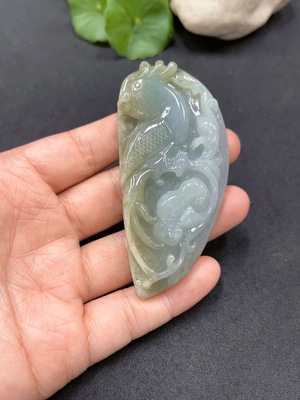 F08349437 JadeiteLotus Leaf and Fish Pendant