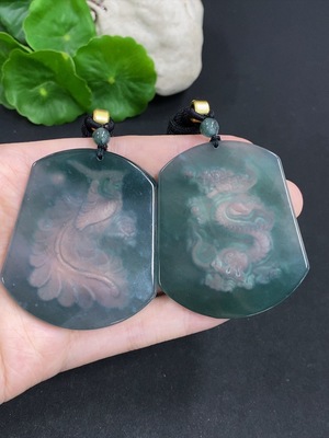 F39664368 Jadeite Dragon and Phoenix Pendant Set Sell as a Lot with Master Collection Certificate and Artist Signature