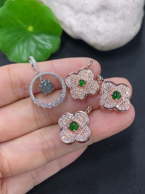 F39616854 Jadeite Inlaid Pendant Sell as a Lot Non-Gold