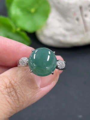 F40710102 Jadeite Cabochon Inlaid Ring Non-Gold Adjustable Total Weight Approx. 3.65g