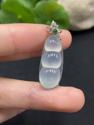 F36333917 Jadeite Lucky Bean Pendant with 18K Gold and Diamond Accents, Total Weight Approx. 3.25g