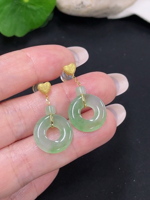 F38513669 Jadeite Inlaid Earrings Pair 18K Gold Total Weight Approx. 2.7g (Including Earring Backs)