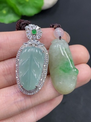F37354435 Jadeite Leaf Pendant Total Weight Approx. 5.4g