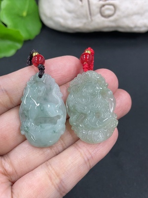 F38493418 Jadeite Pendant Zodiac Plaque with Non-A Grade Beads