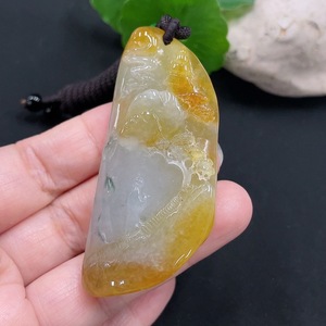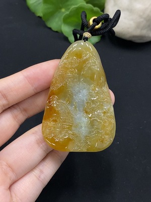 F33926940 Jadeite Landscape Pendant Total Weight Approx. 29.34g Yellow Color Origin Undetermined