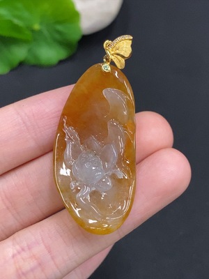 F36219931 Jadeite Auspicious Abundance Pendant with 18K Gold Clasp, Total Weight Approx. 9.8g