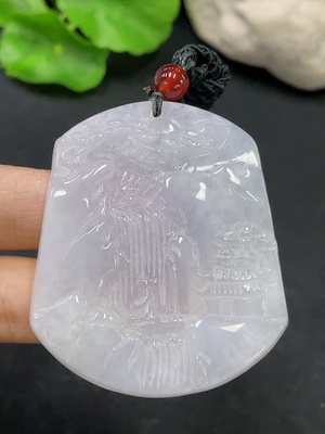 F30453257 Jadeite landscape plaque pendant, total weight approx. 34.4g (including cord weight) (color origin undetermined)