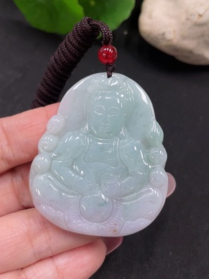 F37358756 Jadeite Guanyin Pendant (Approx. 26g including rope weight) (Non-A grade matching beads)