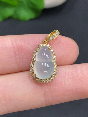 F36263382 Jadeite Gourd Inlaid Pendant 18K Gold Total Weight Approx.1.8g (with Diamond Inlays)