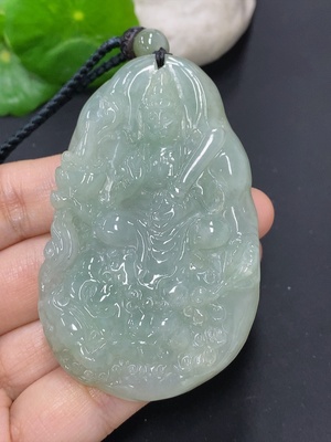 F39554384 Jadeite Manjushri Bodhisattva Pendant, total weight including rope approximately 68.9g