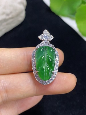F39578602 Jadeite Leaf Pendant Total Weight Approx. 3.58g