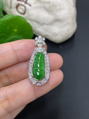 F39655846 Jadeite Lucky Bean Inlaid Pendant Non-Gold Total Weight Approx. 4.43g