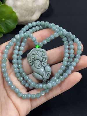 F37463159 Jadeite Pixiu Pendant Total Weight Approx. 43.35g Including Chain