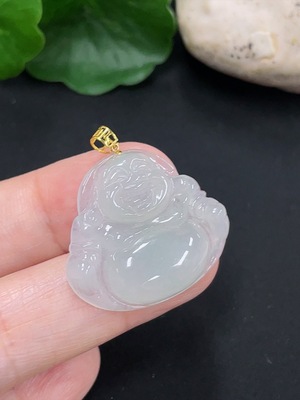 F32757450 Jadeite Buddha Pendant with 18K Gold Clasp, Total Weight Approximately 3.4g