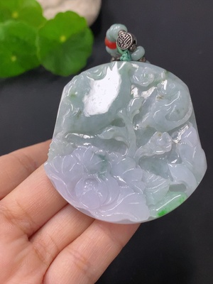 F30523633 Jadeite Pendant Lotus Leaf Fish
