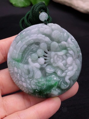 F25900640 Jadeite Phoenix Among Peonies Pendant