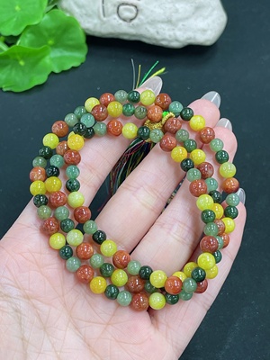 F39549567 Jadeite Bead Necklace with Other Mineral Components, Including Cord Total Weight Approximately 35.46g, Size About 6mm