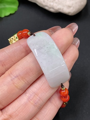 F36307172 Jadeite hand plaque with non-A grade beads, total weight approximately 14.87g