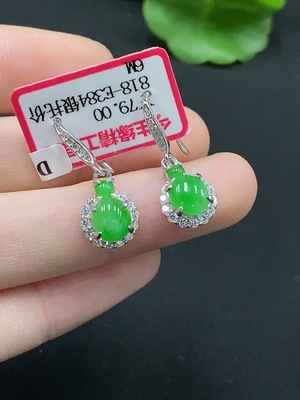 F34995789 Jadeite Inlaid Earrings Non-Gold Inlaid Total Weight Approx. 2.5g