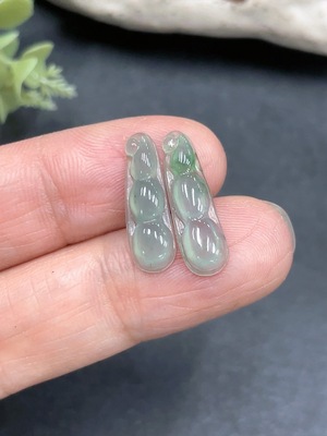 F12382244 Jadeite Inlaid Piece Bean One Hand Two Pieces