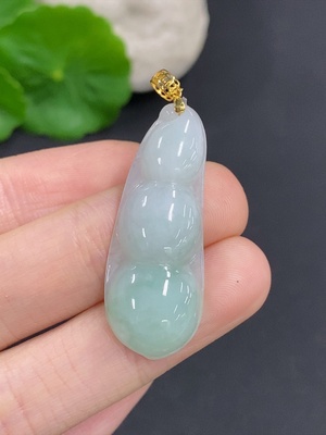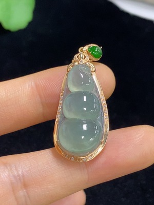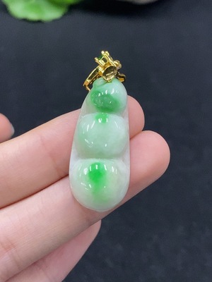 F37464795 Jadeite Auspicious Bean Pendant with 18k Gold and Diamond Accents, Total Weight Approximately 3.67g