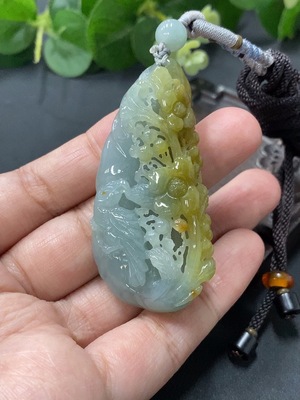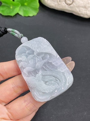 F39649730 Jadeite Pendant Phoenix and Peony Design with Cord Total Weight Approx.50.72g