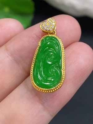 F30568970 Jadeite Ruyi Inlaid Pendant 18K Gold Total Weight Approx. 1.5g (With Diamond Accents)