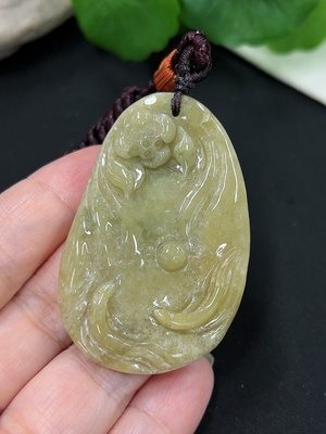 F39652168 Jadeite Auspicious Yearly Abundance Pendant Total weight approximately 23.7g (including cord weight)