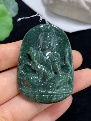 F34002794 Jadeite Dragon-Guarding Guanyin Pendant