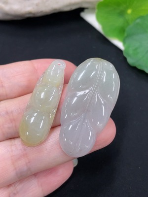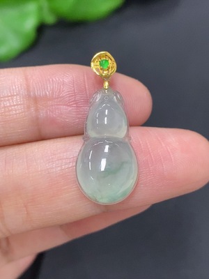 F39635530 Jadeite Gourd Pendant with 18K Gold Clasp, Total Weight Approximately 2g