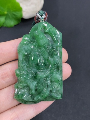 F39601008 Jadeite Guan Gong Pendant Total Weight Including Rope Approx. 50.8g