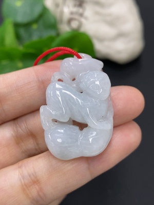 F39643207 Jadeite Monkey Pendant, Total Weight Including Rope Approximately 14.6g